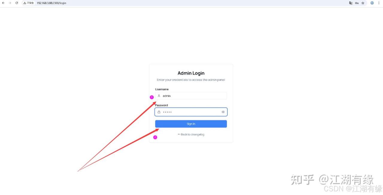 后台管理地址为 http://<服务器IP地址>:2300/admin,我们设置的默认账号密码为