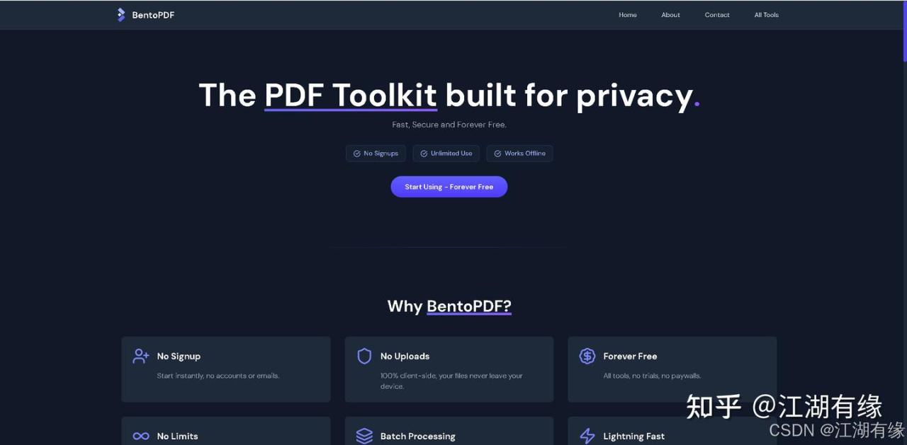 - 无使用限制:可无限次处理任意数量的 PDF 文件,无上传或功能限制。