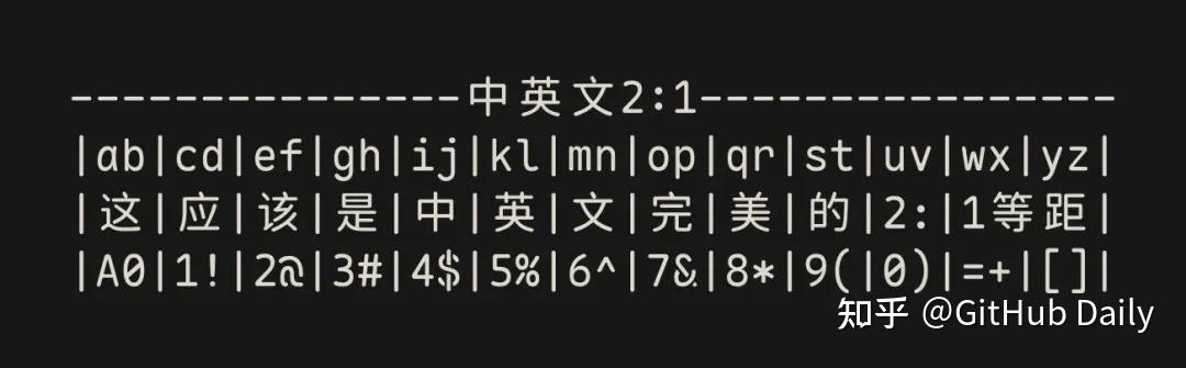 因为绝大多数编程字体,并没有专门为中文做优化,导致一个中文字符的宽度,往往不是两个英文字符的宽度。