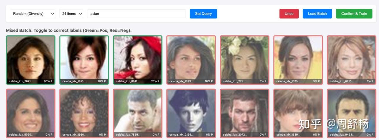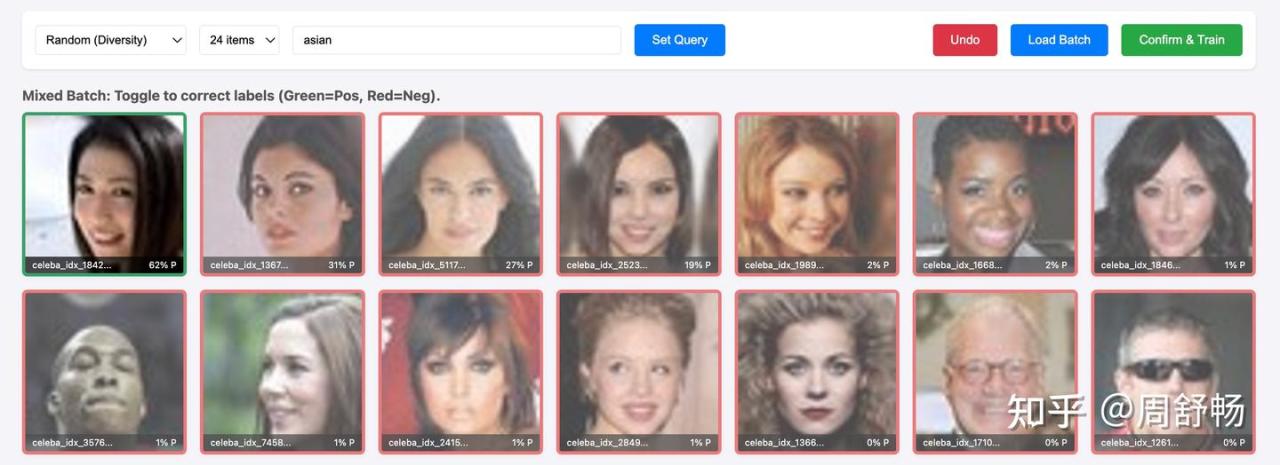 第一轮结果中返回的都红色框,确实里面没有 Asian。直接 Confirm& Train。
