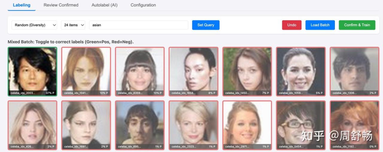 在旷视的一个项目。核心是利用人的并行视觉能力,即”审查比标注快的多的多“,实现图像二分类的超快标注。