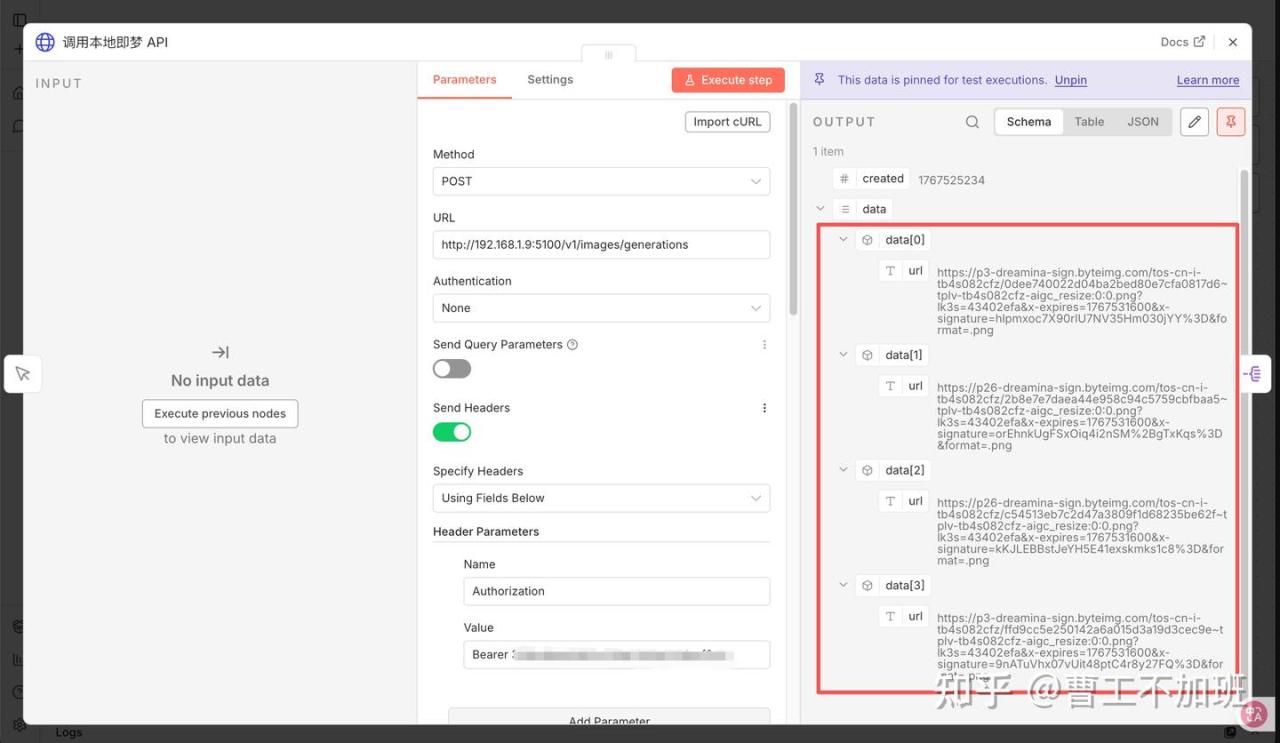 在 n8n 里输入提示词,这边即梦的后台就在生成,完事儿直接把图转成二进制文件存下来,全程不用打开浏览器。