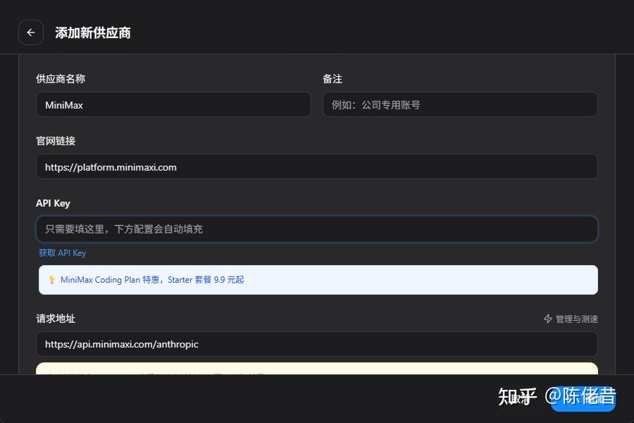 然后回到 CC Switch,粘贴到 API Key 输入框。