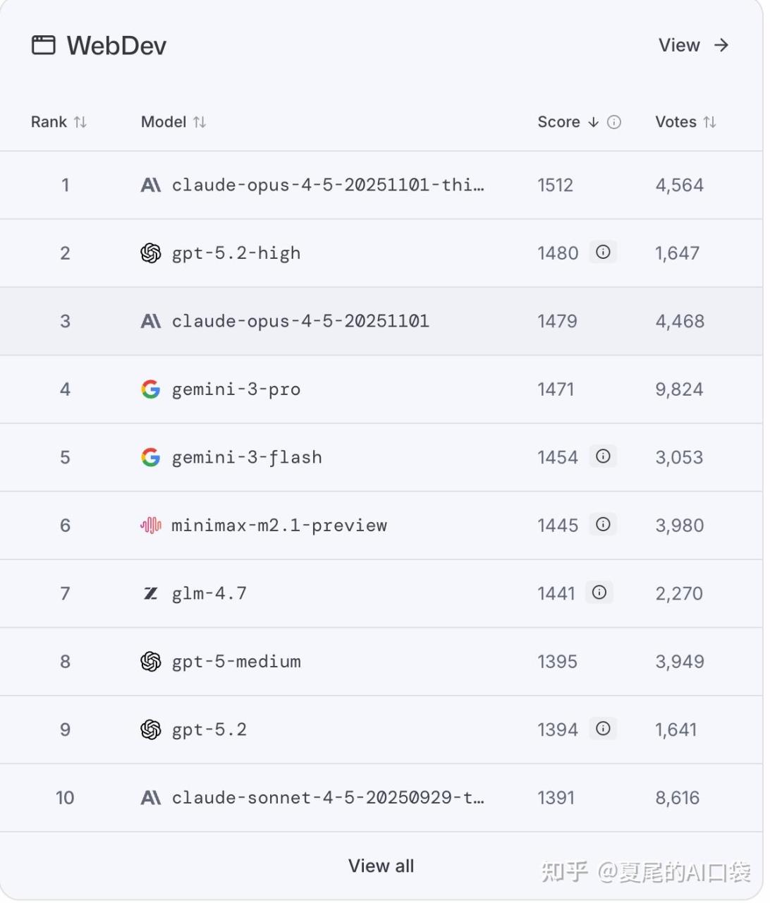 GLM最新的4.7模型,minimax最新的M2.1模型,它们在 lmarena 排行榜上的表现已经超过了 GPT-5.2,目前分别排在第 6 和第 7 位。