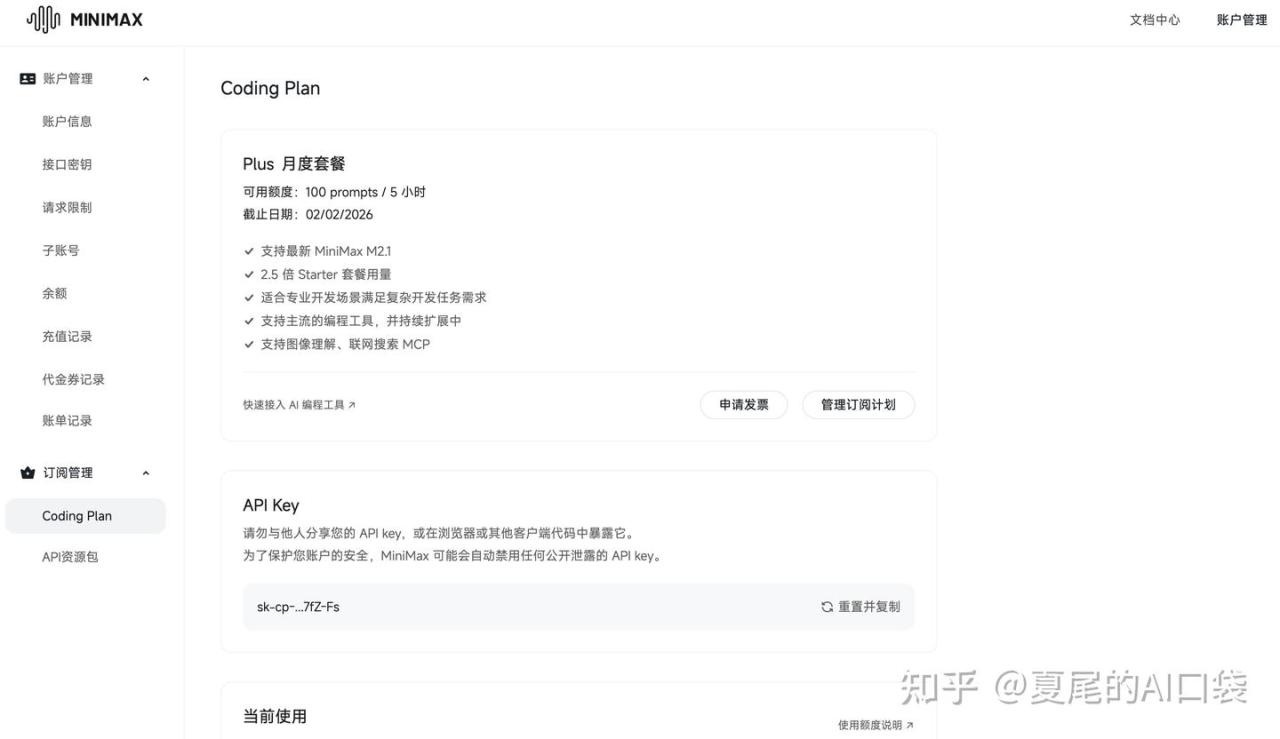 订阅完以后,访问https://platform.minimaxi.com/user-center/payment/coding-plan