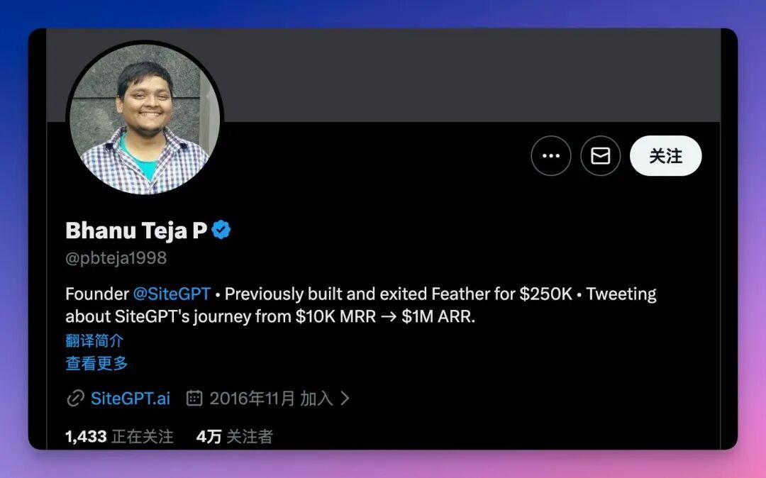 Bhanu 一直在 X 上公开分享自己的创业过程——产品进展、收入数据、遇到的问题、学到的教训。这种透明度让他积累了 3.89 万粉丝。
