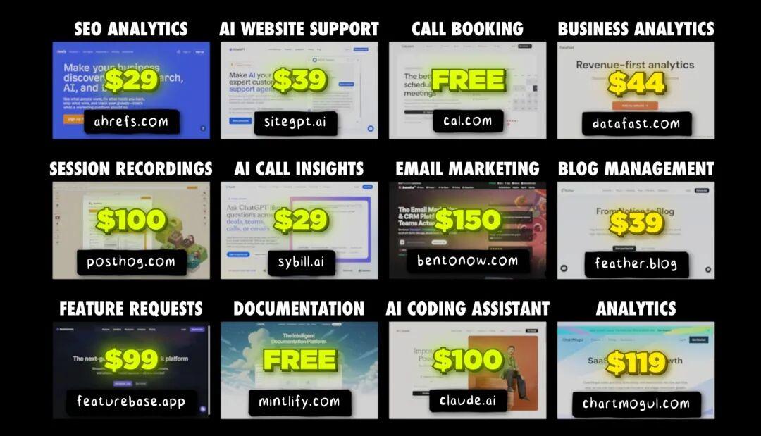 产品开发和管理,他用FeatureBase收集用户的功能请求和 Bug 反馈,用Mintlify做产品文档,用Cursor和Claude Code做 AI 辅助编程,用ChartMogul分析订阅数据。