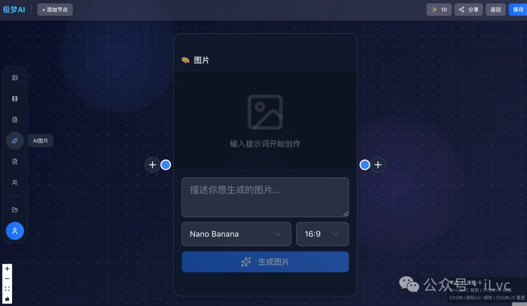 - 4.点击左侧操作栏的 AI图片,在输入框选择对应的模型和文本;