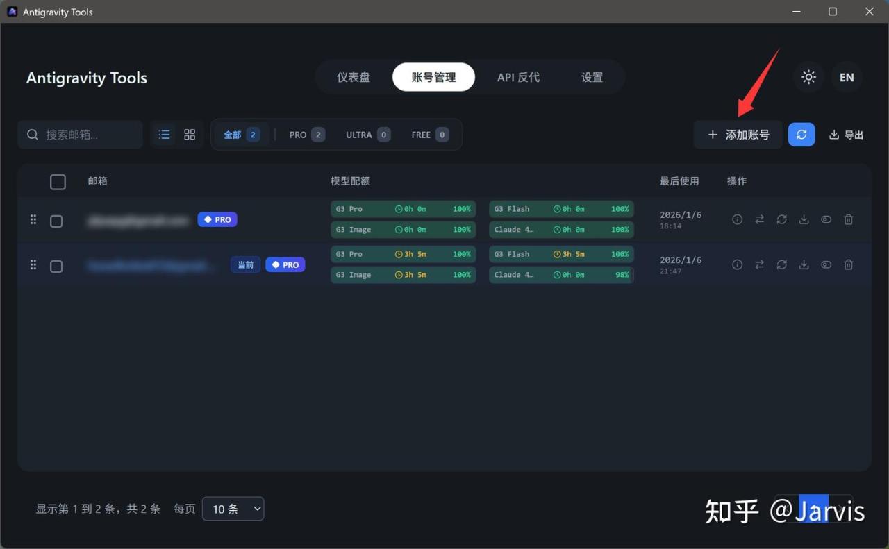 我的截图中已经添加了两个 Pro 的账号。可以通过下面的列表查看具体的配额和重置时间。