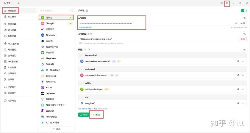 接入Cherry Studio测试,右上角小齿轮 设置 -> 模型服务 -> 添加,输入「老黄」,点 确定。 配置连接信息: