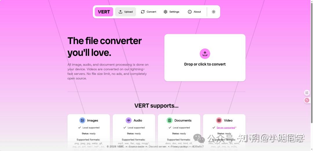 作为“新一代”转换器,VERT 支持的格式非常全: