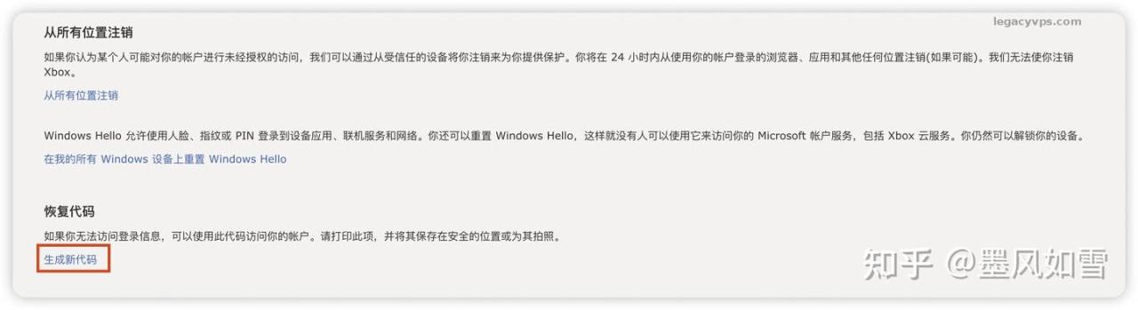 - 在“高级安全选项”页面,向下拉,找到 “恢复代码” (Recovery code) 区域。