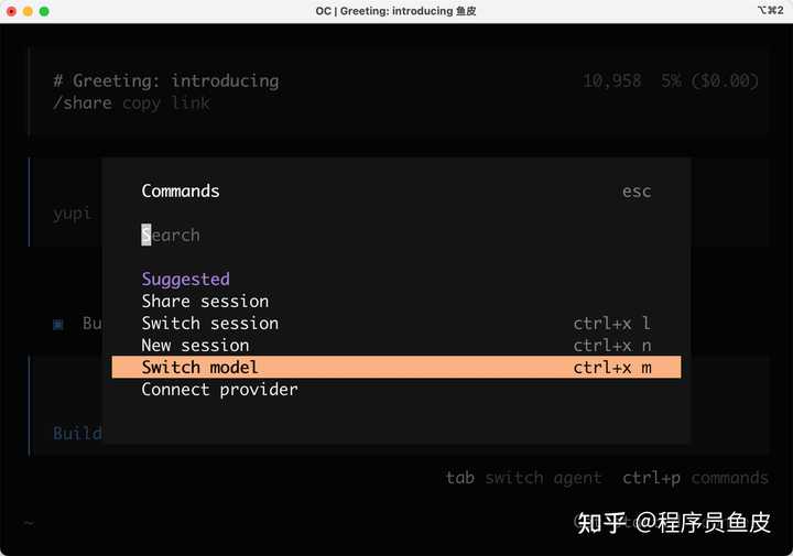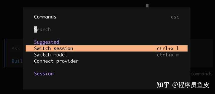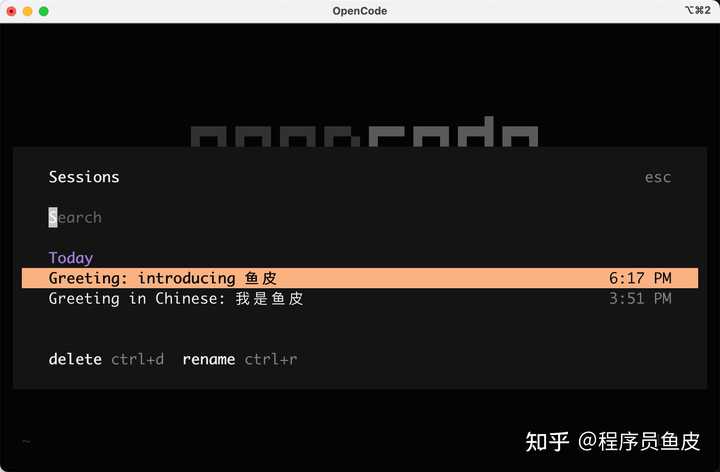 如果你不小心关闭了 OpenCode,不用担心,可以打开命令面板,选中 “Switch session” 切换会话: