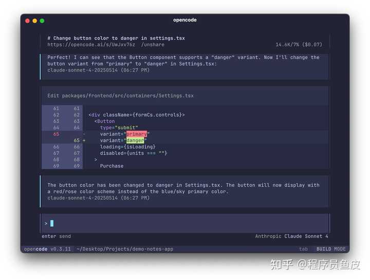 相比于 Claude Code,OpenCode 真是把命令行的交互体验拉满了,甚至我觉得它是一个伪装成命令行的桌面应用。