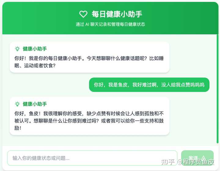 你是一位专业的程序员,请帮我开发《每日健康小助手》网站,用户可以通过和 AI 聊天来记录和管理每日健康状态。