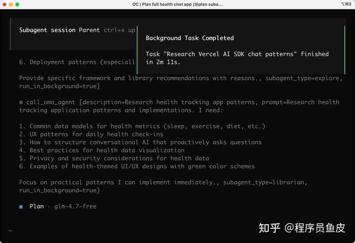 而且当后台任务完成时,会有一个提示。可以看到 “研究 Vercel AI SDK 对话模式” 的任务已经完成。
