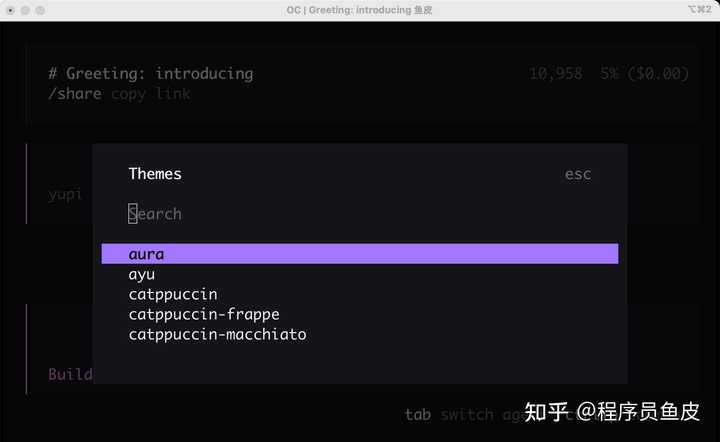 支持几十个不同的主题,颜值都挺高的,从这点也能看出来 OpenCode 很注重用户的体验: