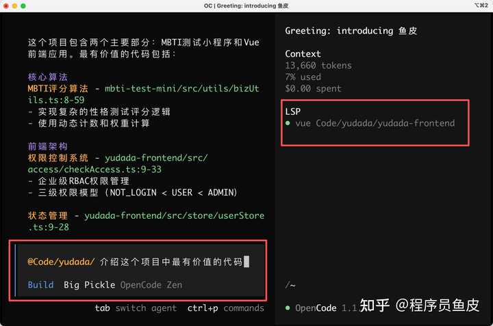 比如我让 AI 介绍我的 AI 答题平台项目中最有价值的代码,LSP 就派上用场了。它能帮 AI 快速定位某段代码在哪里被调用、引用了哪些变量,而不是让 AI 傻傻地全局搜索文本。