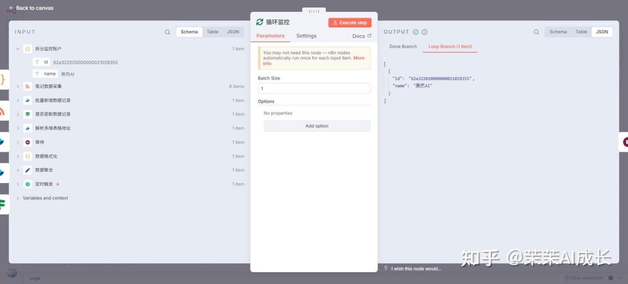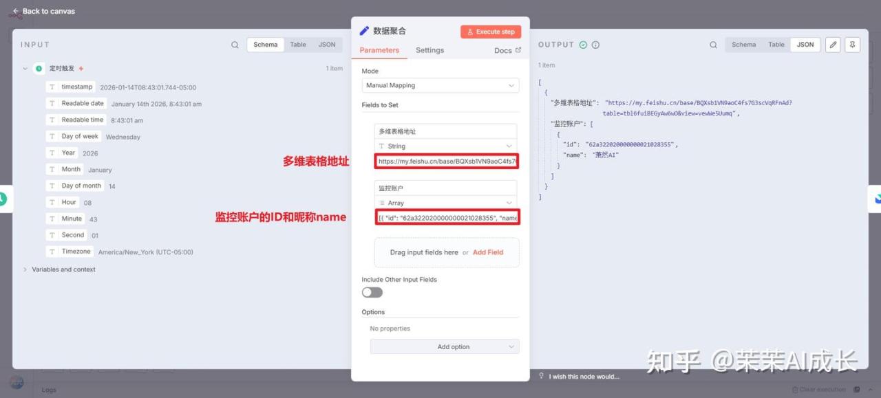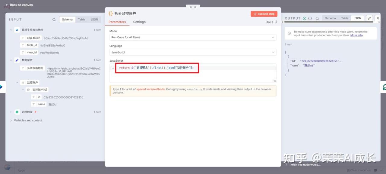 我们通过Code节点拆分监控账户,取出监控账户的id和name
