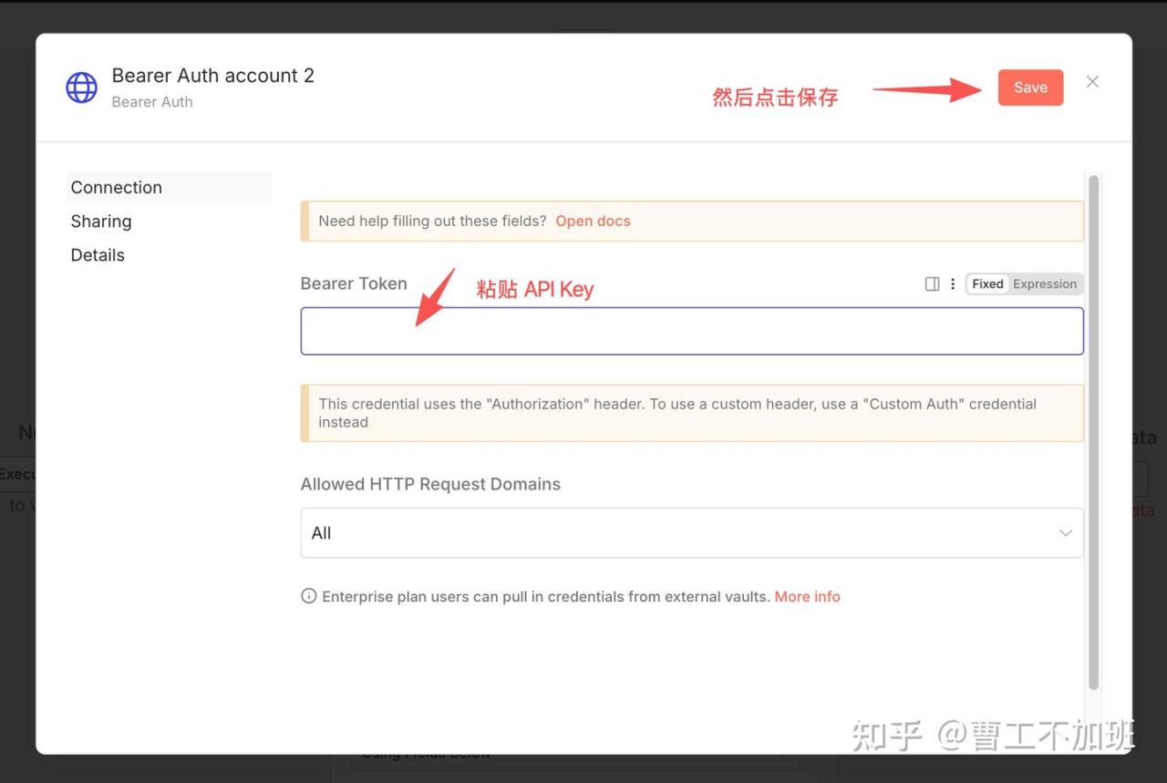 把你的 Key 填进去,保存以后会自动选用这个凭证。