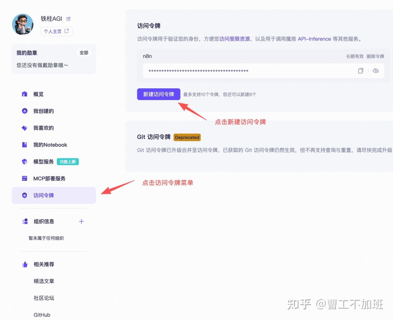 点击“新建访问令牌”,输入名称点击“新建令牌”