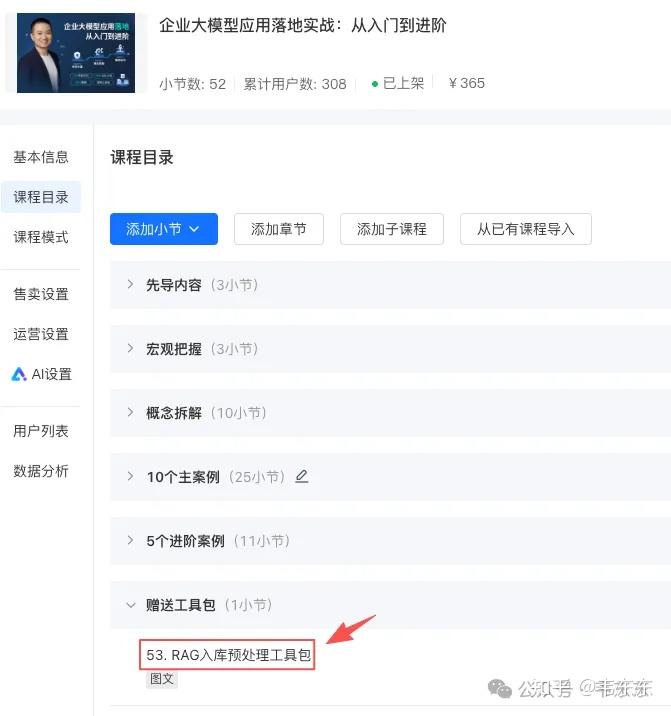 这个工具包定价 99 块钱(点击左下方“阅读原文”即可购买)。如果购买了我的企业大模型应用案例视频课程,或者是知识星球的成员,可以免费获得。后续还会继续迭代。目前规划的方向包括分块策略推荐(根据文档特征给出不同的分块方案对比)、检索效果评测(用标注数据评估召回率)等。如果你有其他想法或者使用中遇到问题,欢迎反馈。