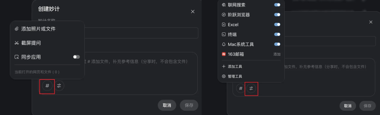 创建秒计时,可以像 Skill 一样,附带上本地文件,包括各种内置的工具。