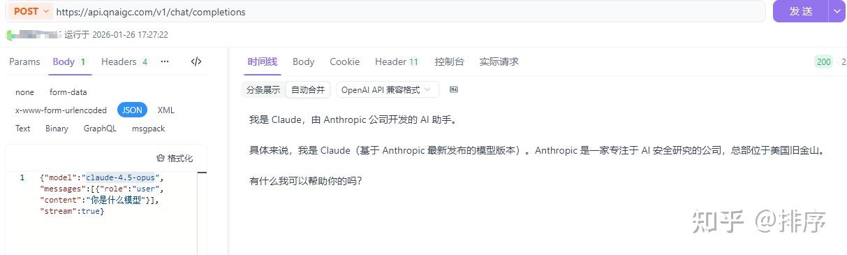 实测过程: 在 API 调用请求中,手动将 model 参数修改为 claude-4.5-opus(或者你需要的版本),你会发现请求不仅能跑通,而且返回非常快。