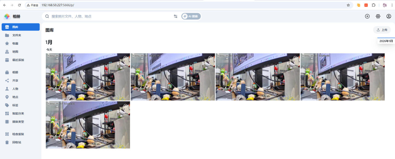 回到飞牛相册,打开首页,可以看到,录像成功的显示在了图库中: