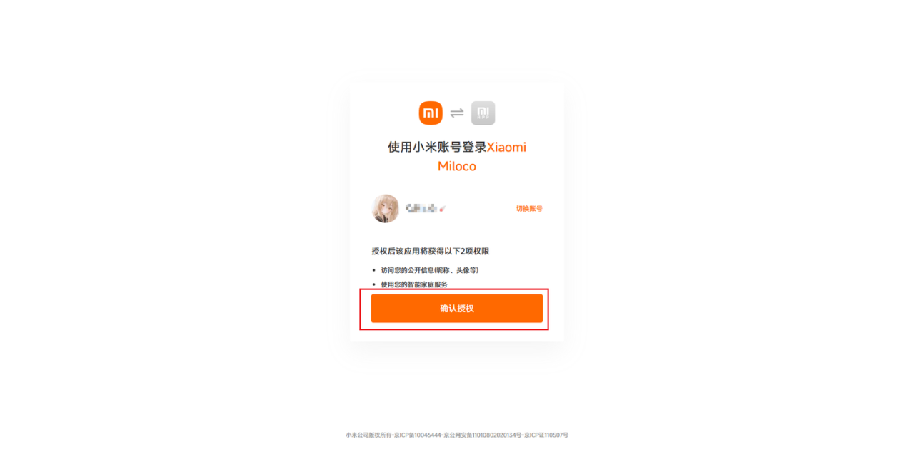接着会跳转小米账号登录页面,登录你的小米账号,然后进行授权即可: