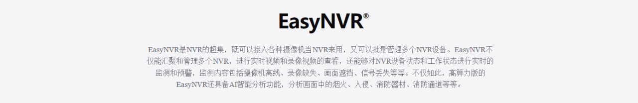 EasyNVR 是一款专业的软件型网络录像机(Network Video Recorder,NVR),用于集中管理和录像多路网络摄像头的视频流。它可以替代摄像头厂商提供的云存储服务,将录像统一存储在本地 NAS 或服务器上,实现完全的本地化管理。