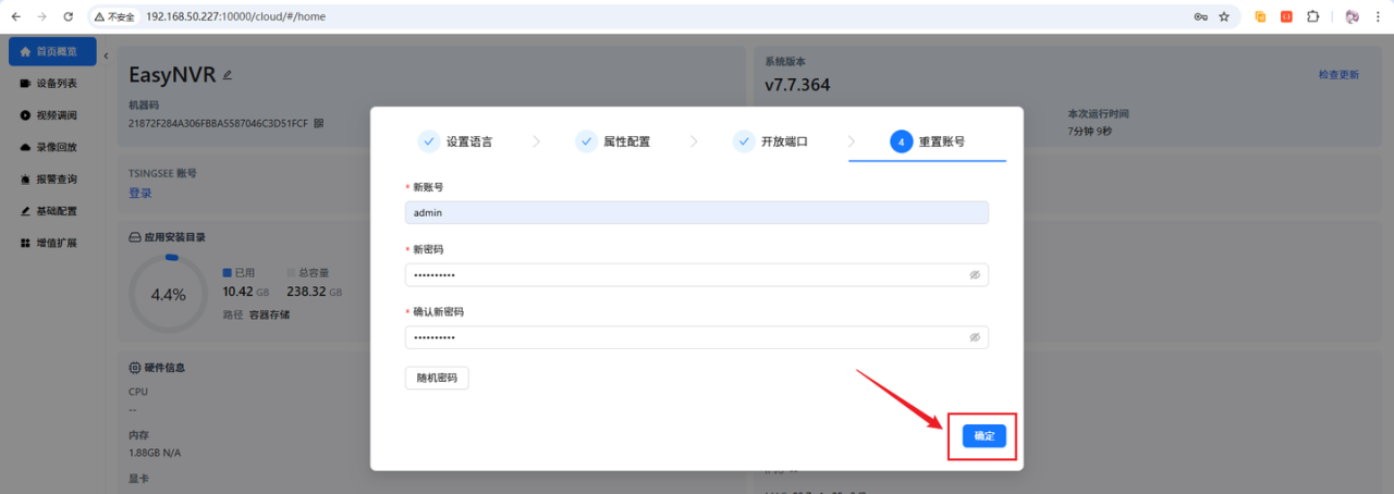 来到最后一个步骤,重置一个账号和密码,点击确定就好啦: