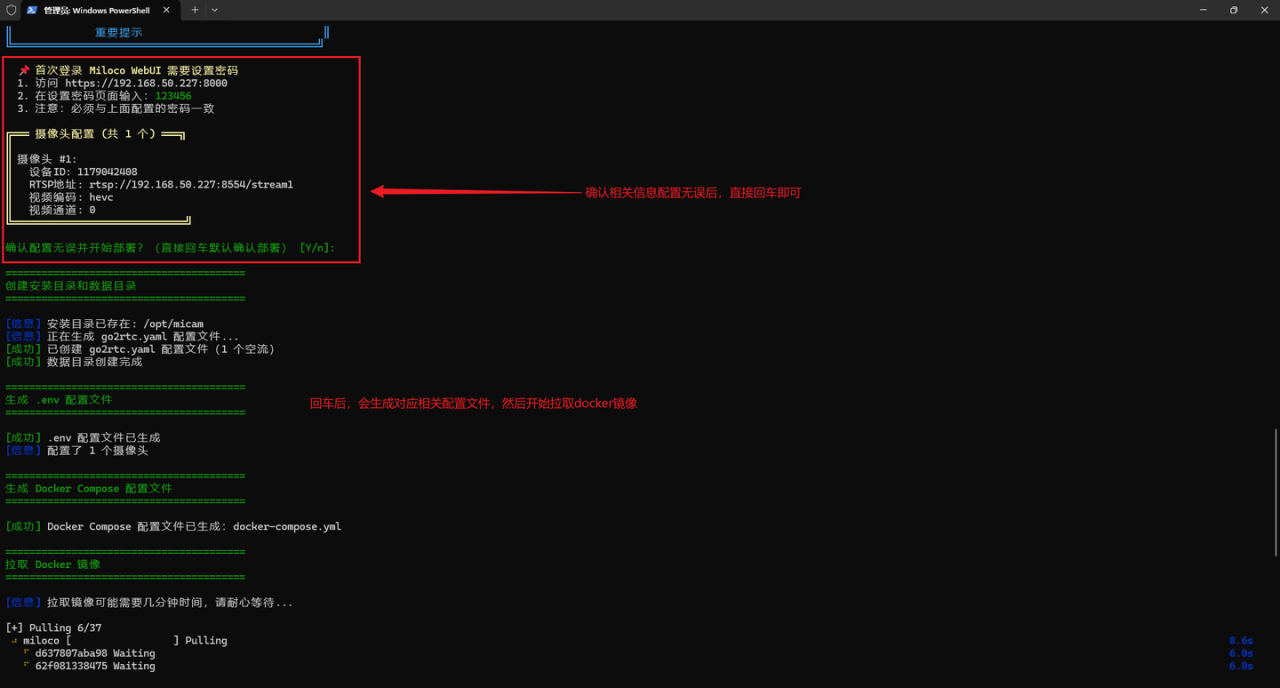 回车后,确认相关信息无误再次回车,即可开始部署: