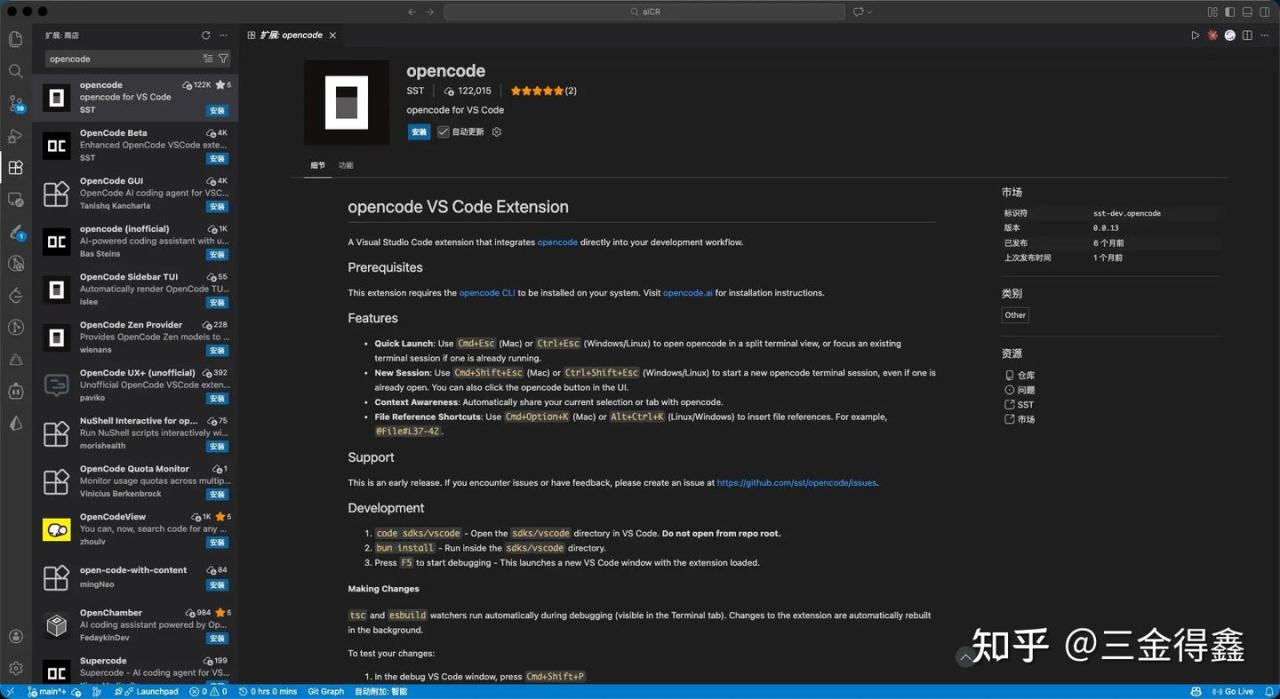 打开 VSCode 插件市场,并搜索 opencode,选下载数最多的那个: