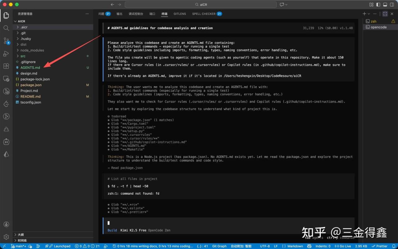 这里说的初始化,并不是我们初始化项目代码,而是通过 opencode 内置的 /init 命令来初始化这个项目的规则文件。