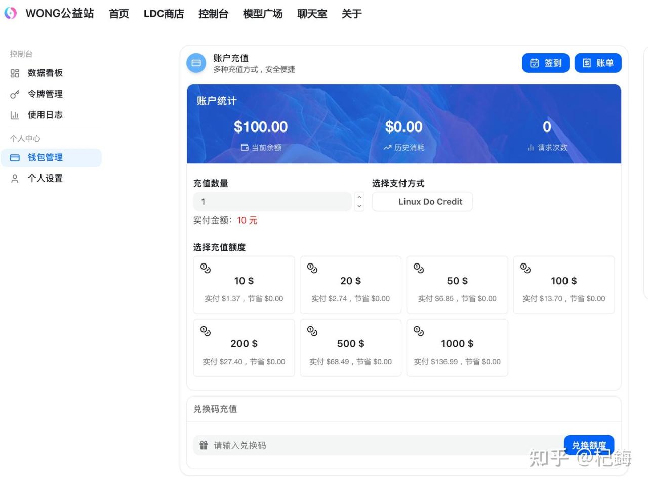但还是能充值,只认LDC(LinuxDo论坛积分)。