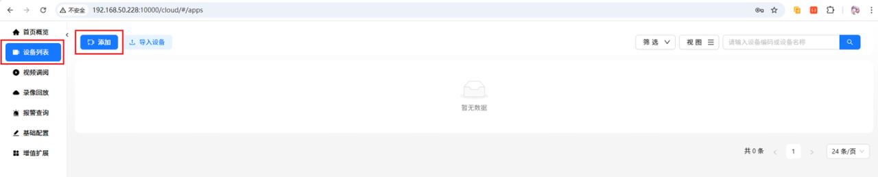 首先打开EasyNVR的首页,然后选择设备列表菜单,点击添加按钮: