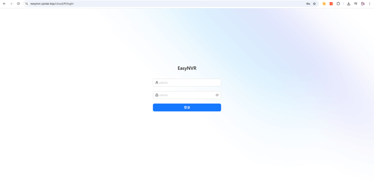 可以看到成功的访问到EasyNVR的页面啦!不过随机域名方式适合预算有限的用户。使用此方式时,系统会每隔 24 小时 左右自动更换一次域名地址。对于长期访问的不太友好,但是该方案是免费的,如果您有一定的预算,可以查看固定域名方式,且访问更稳定哦。
