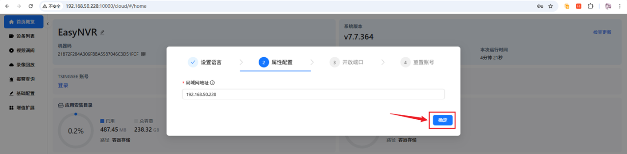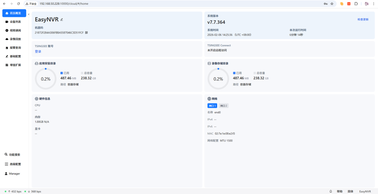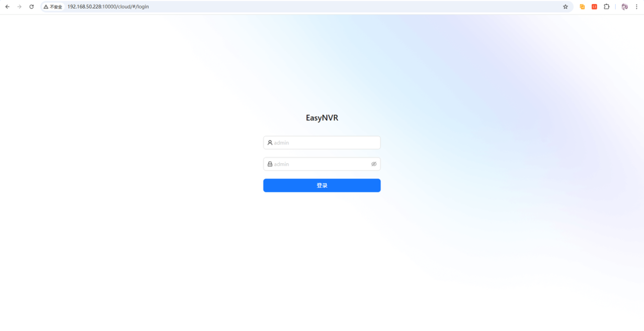 接着,在浏览器中访问你的飞牛Nas主机ip地址+10000端口,即可访问到EasyNVR页面了: