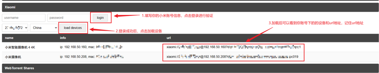 接着,滚动到底部,展开Xiaomi这一栏,填写你的小米账号信息,进行登录,然后点击加载设备: