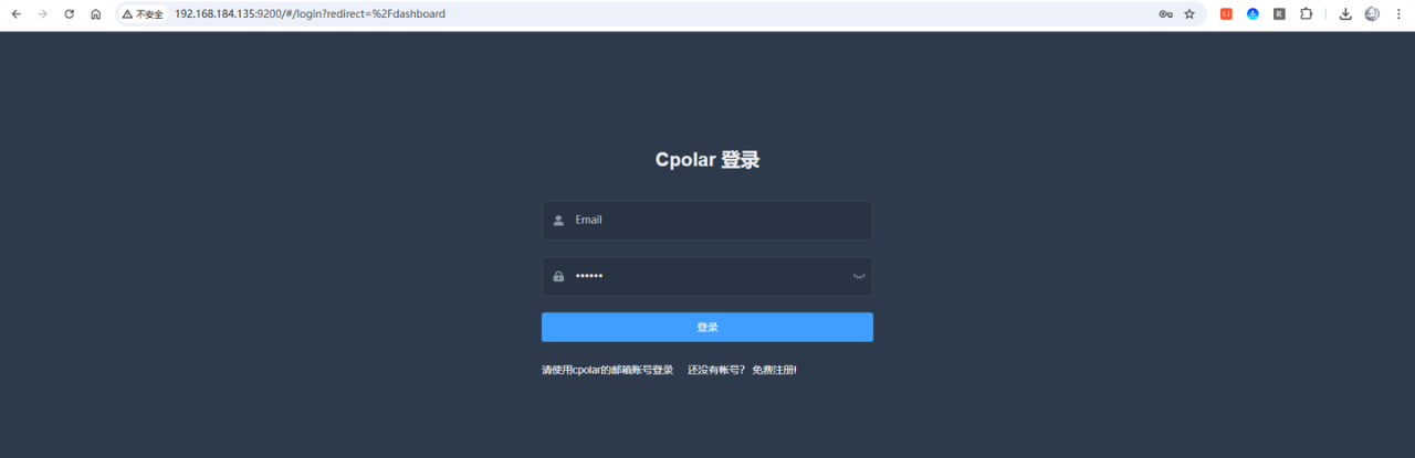 输入刚才注册好的cpolar账号登录即可进入后台页面: