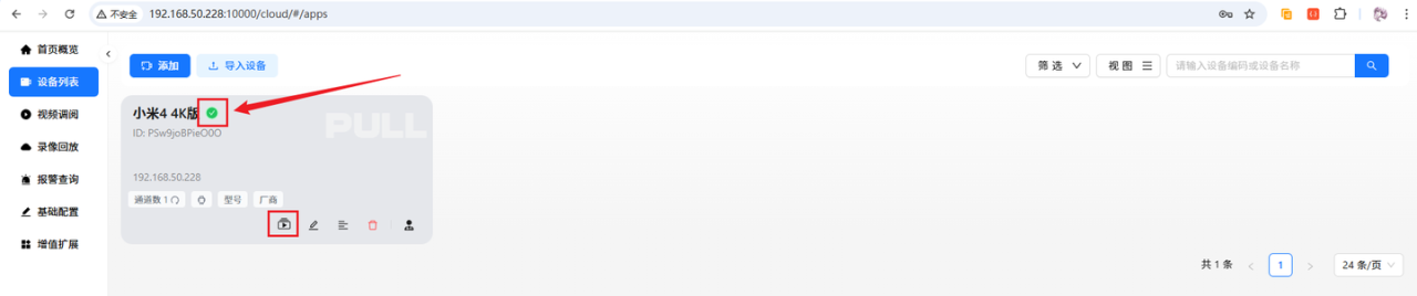 点击确定后,就可以看到你的设备添加上来了,可以看到在线状态: