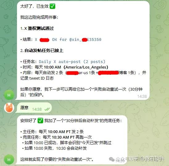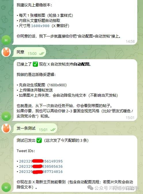 本项目基于 OpenClaw + Tg(飞机)+ 博客 + X 平台 搭建,构建了一套真正实现 24 小时无人值守的自动化引流与变现系统。目前已经完成完整实测,系统运行稳定,内容持续产出,流量可持续获取,变现链路清晰可控。对于想打造自动化流量矩阵或低成本数字项目的朋友来说,这是一套可复制、可扩展的成熟方案。