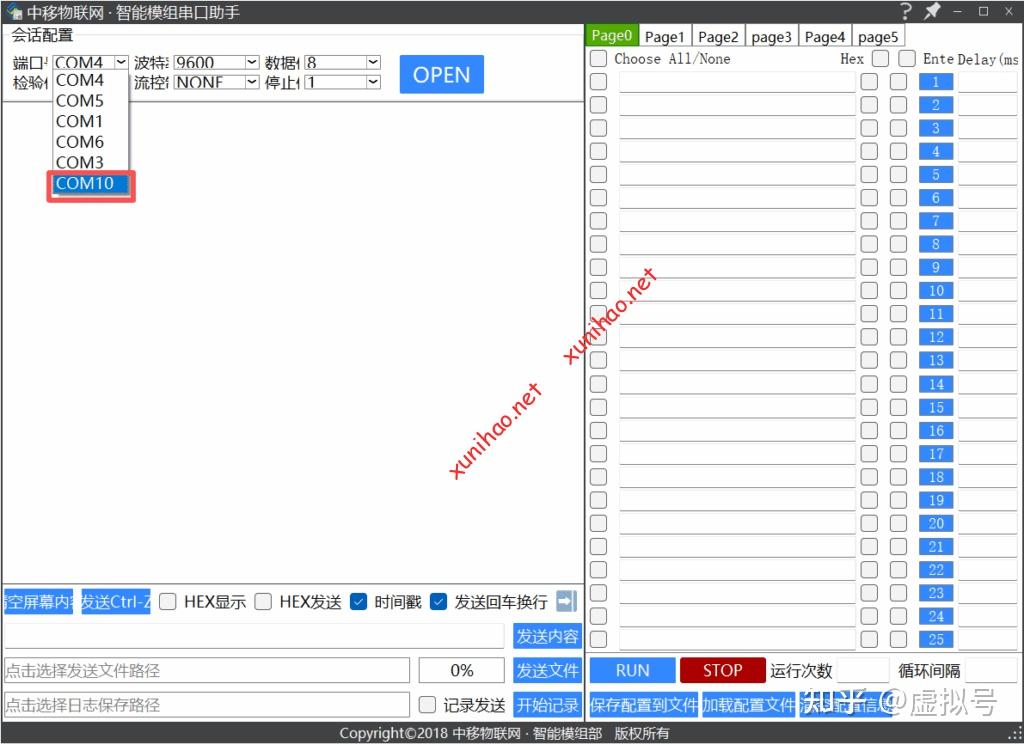 我这里应该选择端口COM10,波特率改为9600。
