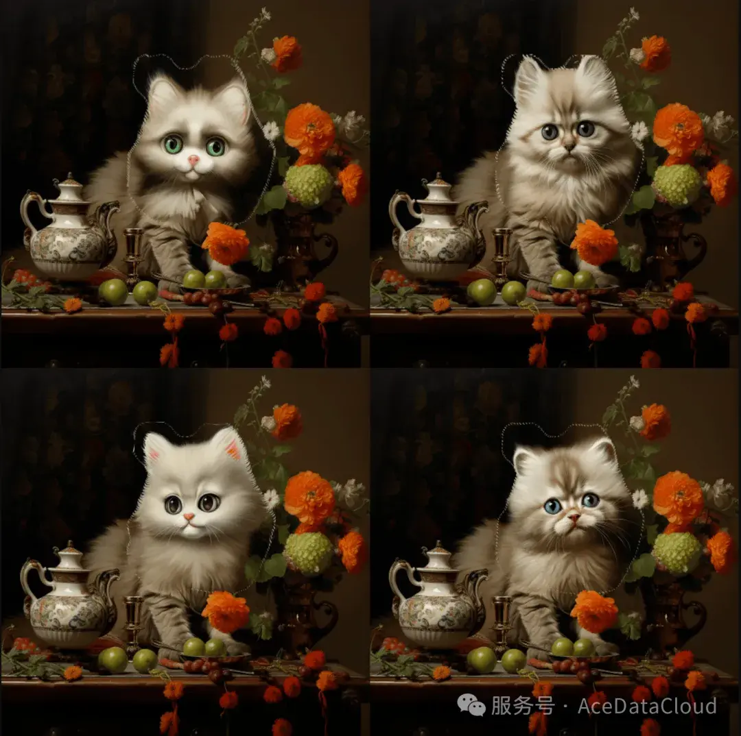 可以发现这是对掩码区域的图像进行了重绘操作,返回的结果与上文的是一致的,结果如下图所示:
