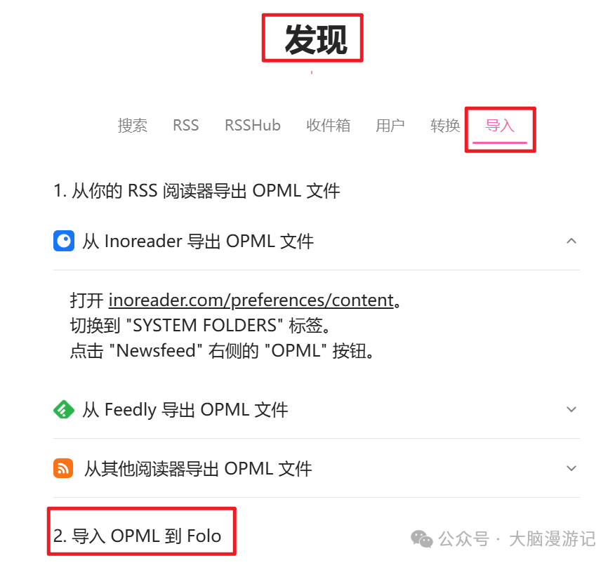 目标:将 .opml 文件导入到新的 FOLO 或其它阅读器中。