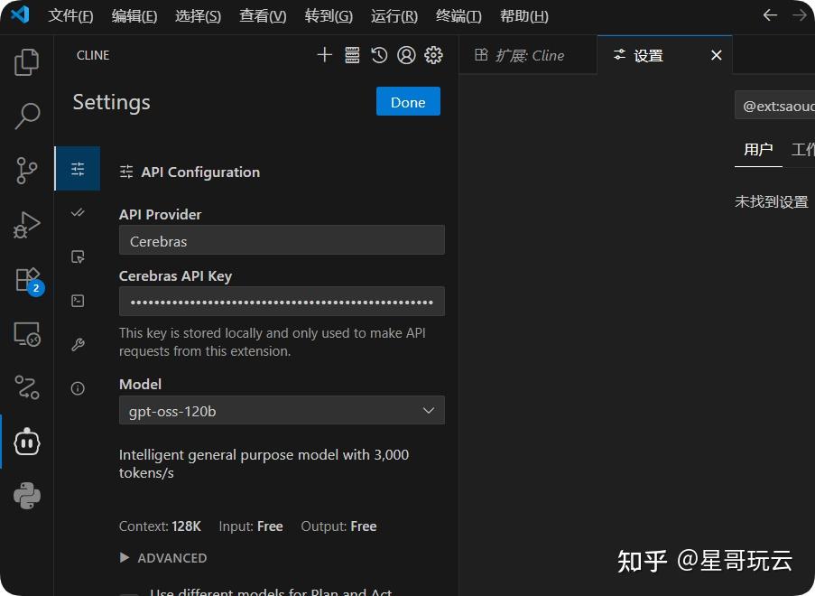 - API Provider选择”Cerebras”