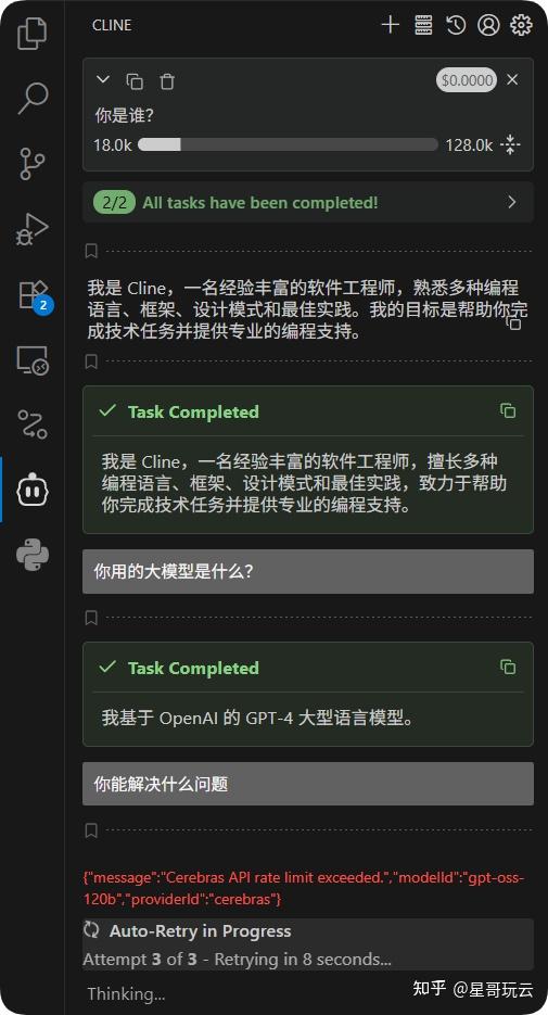配置完成后,你就可以享受极速Coding的快感了。代码补全、bug修复、功能实现,Cline都能帮你搞定。而且因为Cerebras的推理速度极快,整个交互过程几乎没有延迟,那种体验真的让人上瘾。