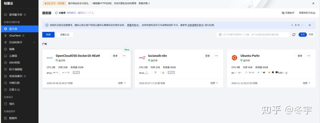 - 进入服务器管理后台: 访问 腾讯云轻量应用服务器控制台。你会看到刚刚领取到的服务器实例。