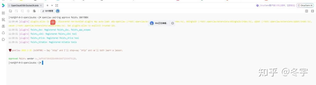 /root/.npm/_npx/...开头的长命令,然后按回车执行。 - 执行完毕后,关闭终端窗口。现在回到飞书,你的机器人应该就能正常对话了。